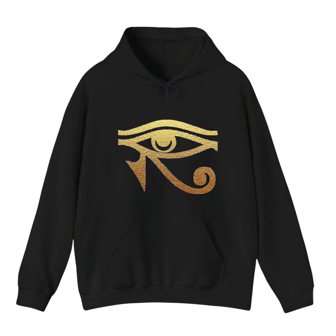 هودي أسود للجنسين - مطبوع عليه عين حورس الذهبية