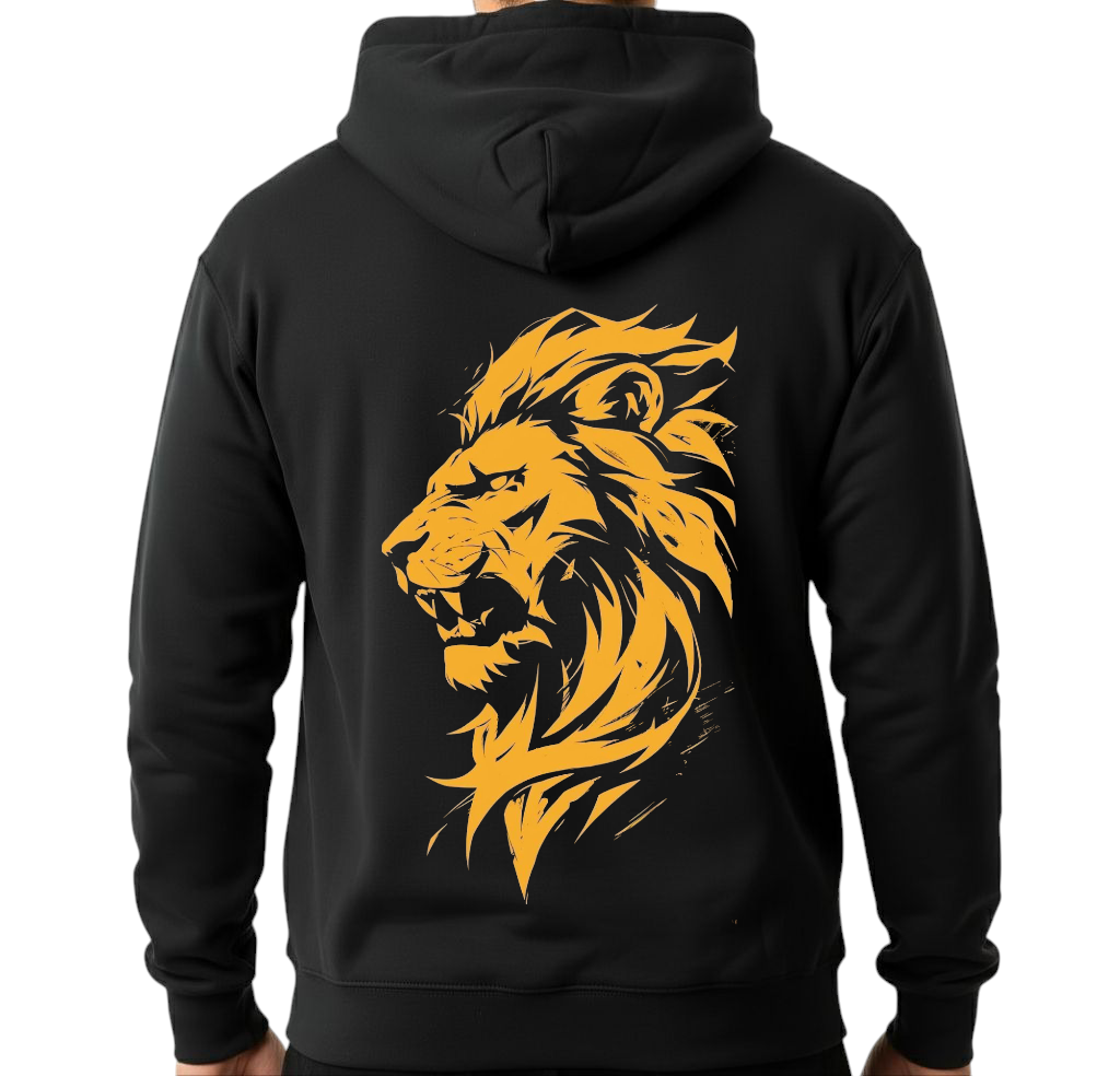 هودي أسود للجنسين - أسد ذهبي مطبوع (الظهر)