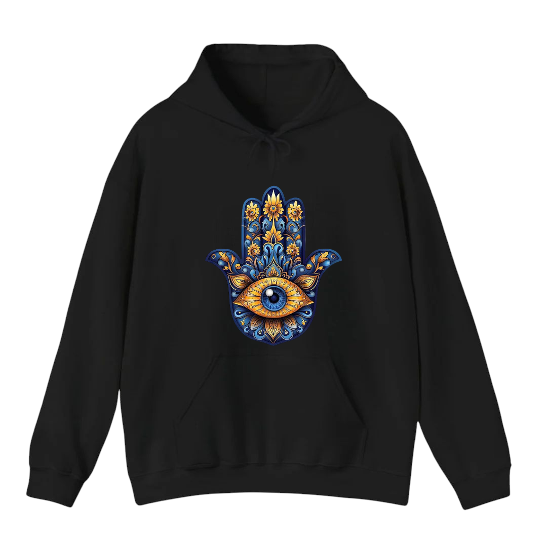 هودي أسود للجنسين - مطبوع - عين خامسا أزرق