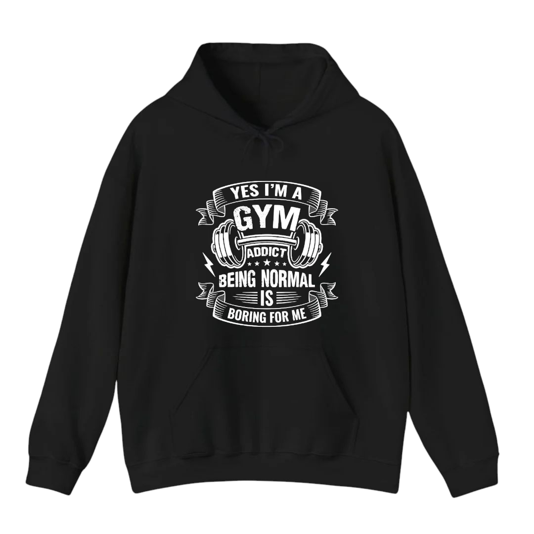 هودي أسود للجنسين - مطبوع - نعم أنا مدمن على الصالة الرياضية