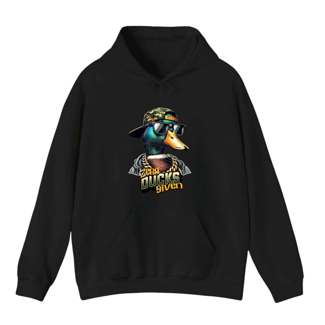 هودي أسود للجنسين - مطبوع عليه ZERO DUCKS GIVEN