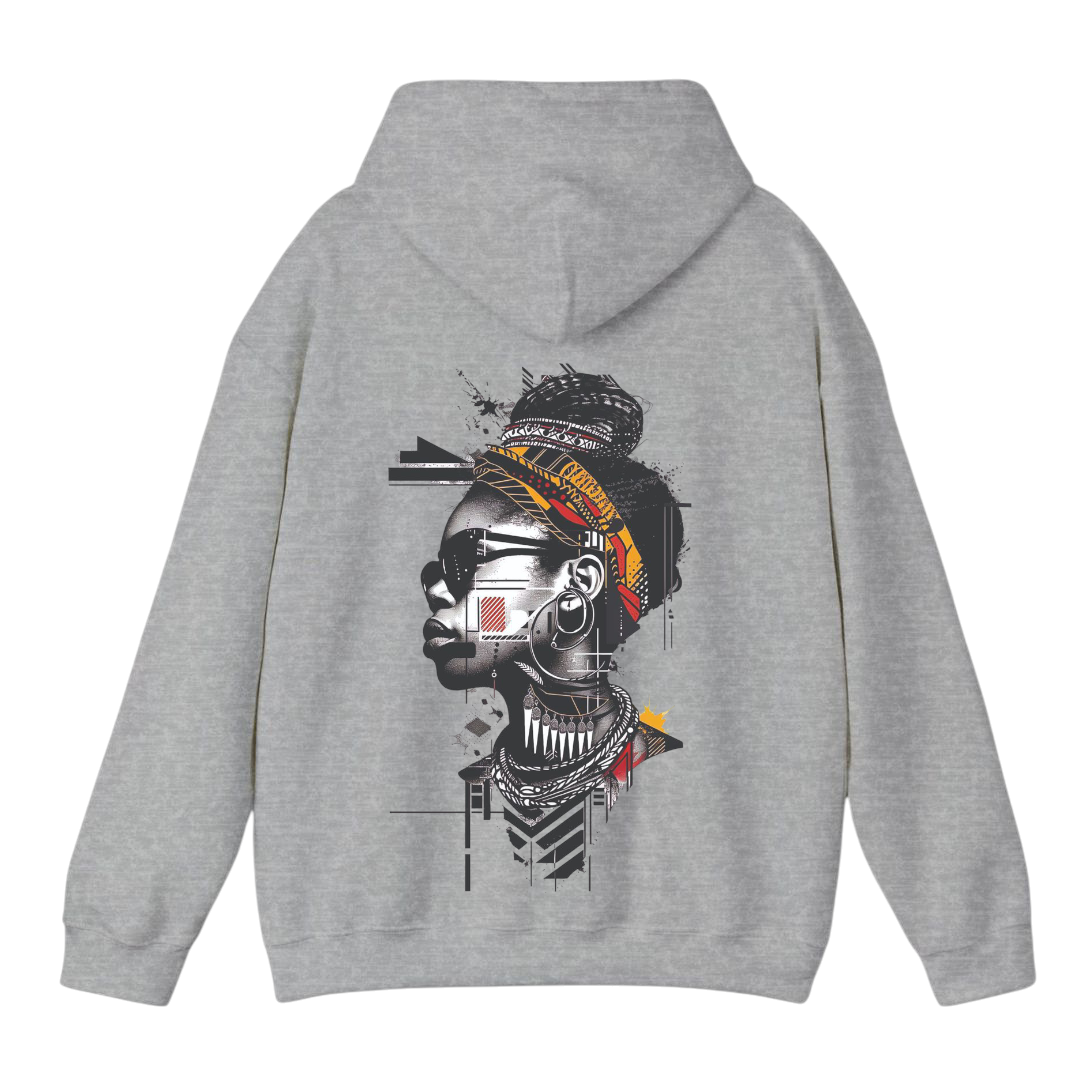 هودي رمادي للجنسين - امرأة أفريقية مطبوعة (الظهر)