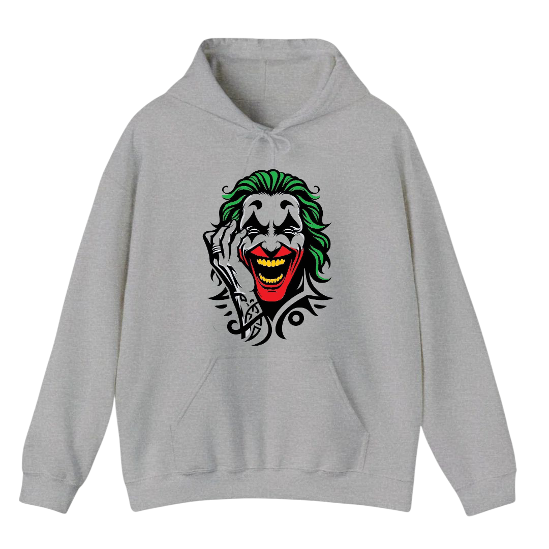 هودي رمادي للجنسين - مطبوع عليه طبعة الجوكر المجنون