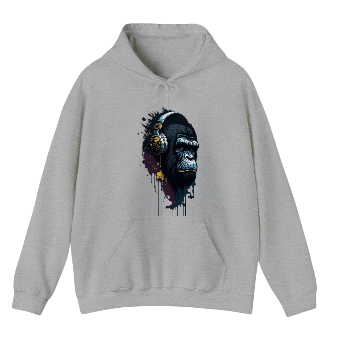 هودي رمادي للجنسين - مطبوع عليه موسيقى الغوريلا